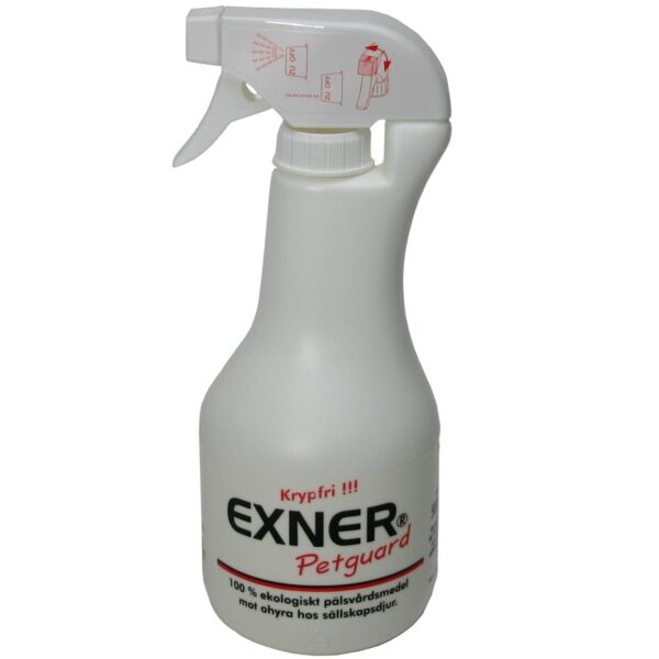 EXNER Petguard er et pelspleiemiddel for kjæledyr laget utelukkende av naturlige ingredienser som fremmer dyrets trivsel og velvære. Produktet kan trygt brukes selv på nyfødte dyr ved behov og virker effektivt mot all slags utøy.